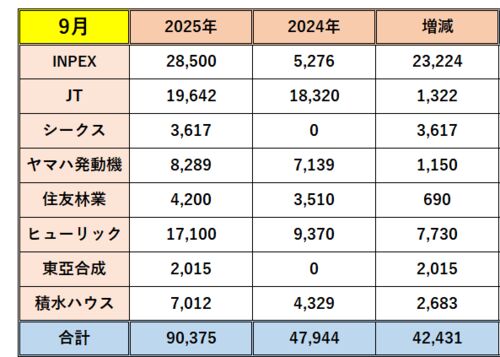 9月に受け取った配当金の記録です。あとは最近の投資状況についてです 9月に受け取った配当金 2025年の配当と2020年からの累計配当金 最近の投資について 9月に受け取った配当金 9月に受け取った配当金の合計は90,375円でした。内訳です 前年比で42,431…